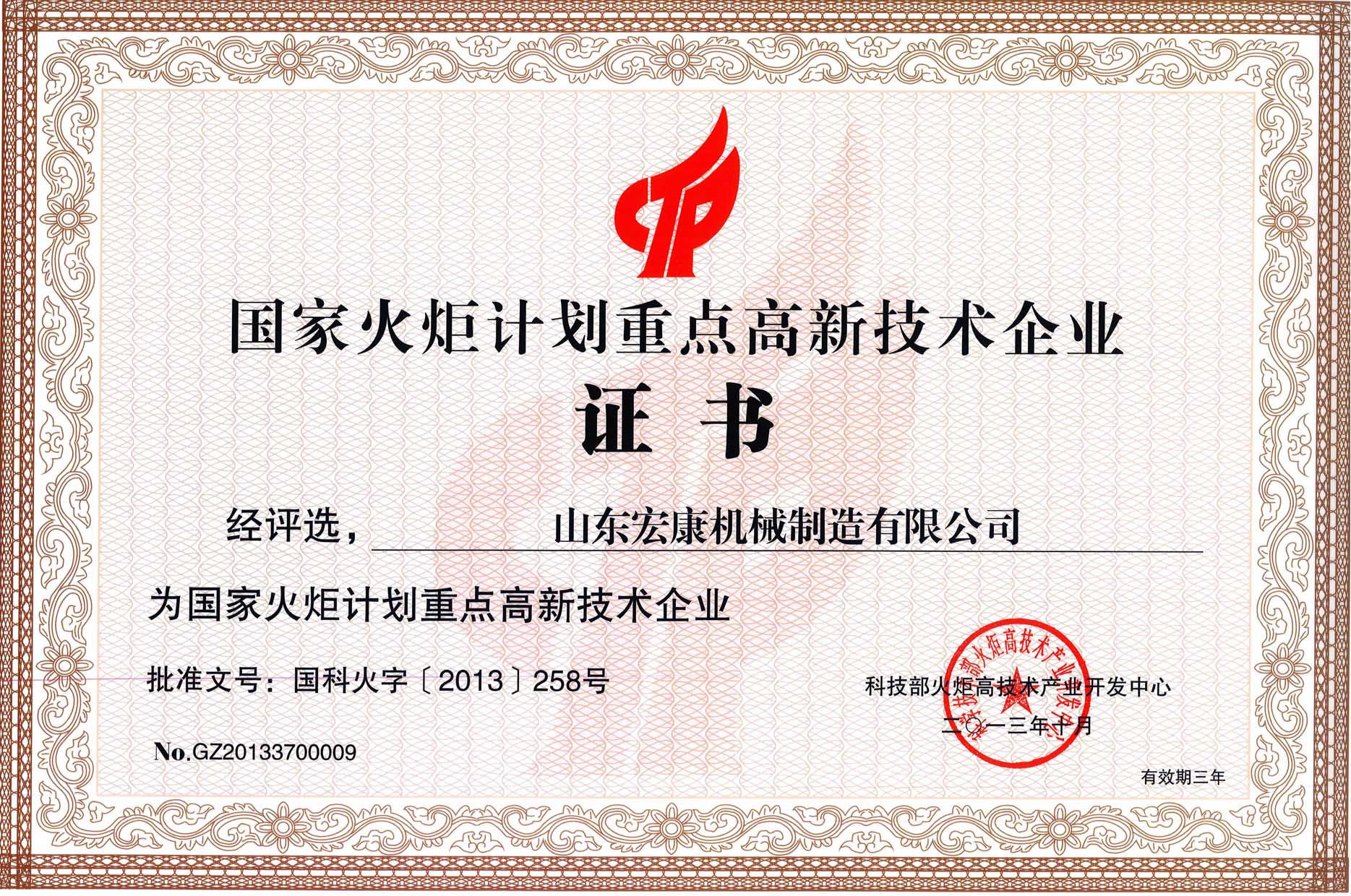 根據(jù)國家科技部火炬中心《關(guān)于發(fā)布2013年國家火炬計劃重點高新技術(shù)企業(yè)評選結(jié)果的通知》(國科火字〔2013〕258號),集團公司被評選為國家火炬計劃重點高新技術(shù)企業(yè)。